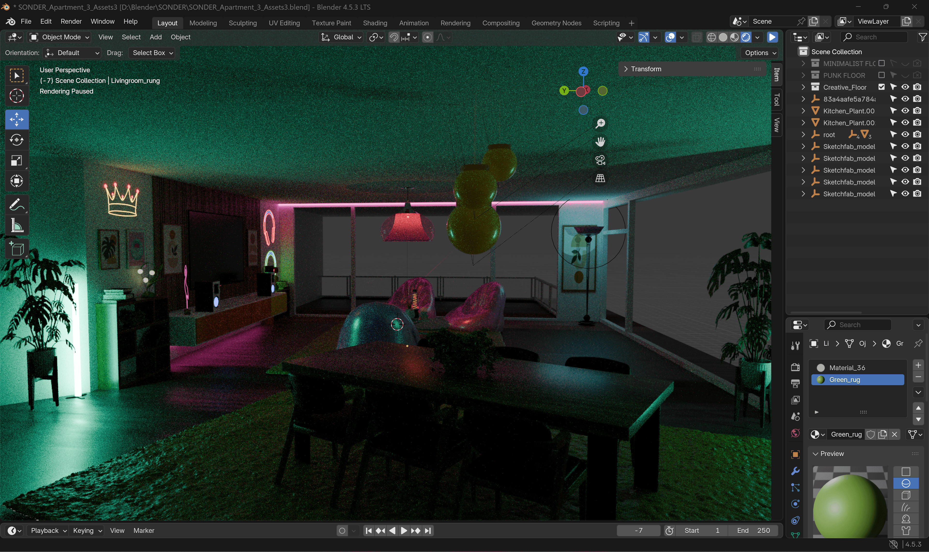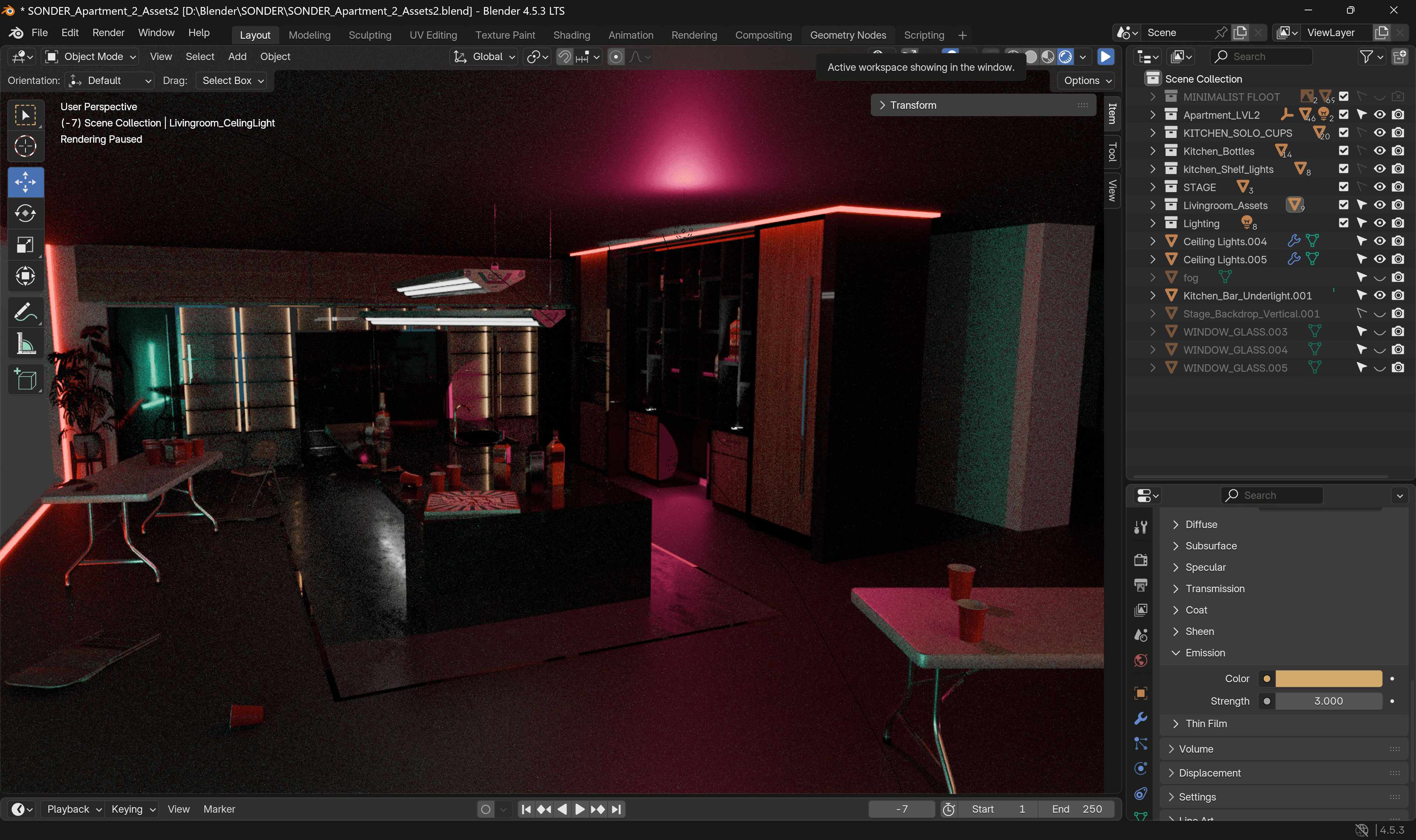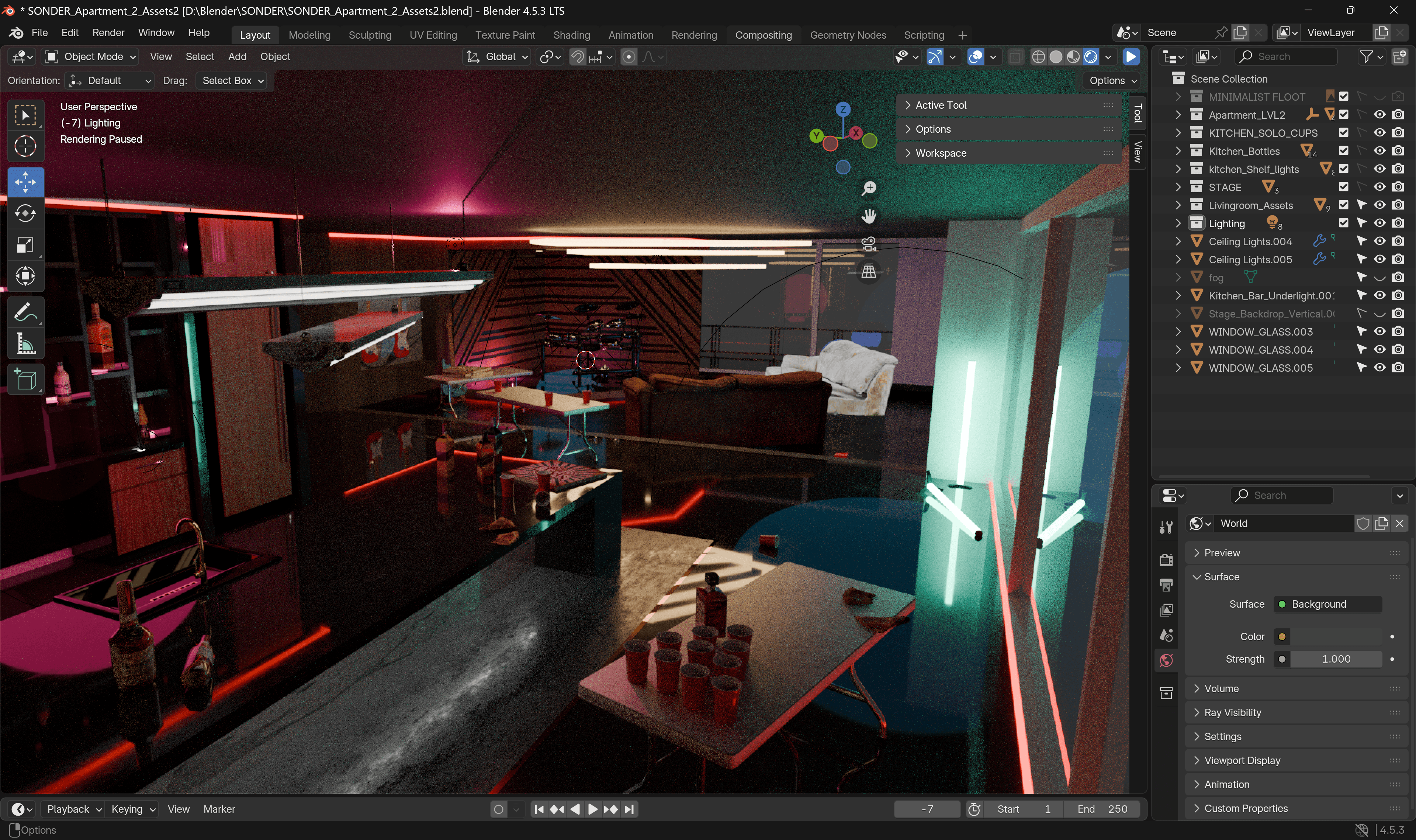 Once I finished with the basic modeling, I then went on and researched apartment interiors so that I could make my apartments seem well lived-in! I took inspiration from many luxury apartments in real life, as well as apartments from video games such as Cyberpunk! Here are some progress photos!